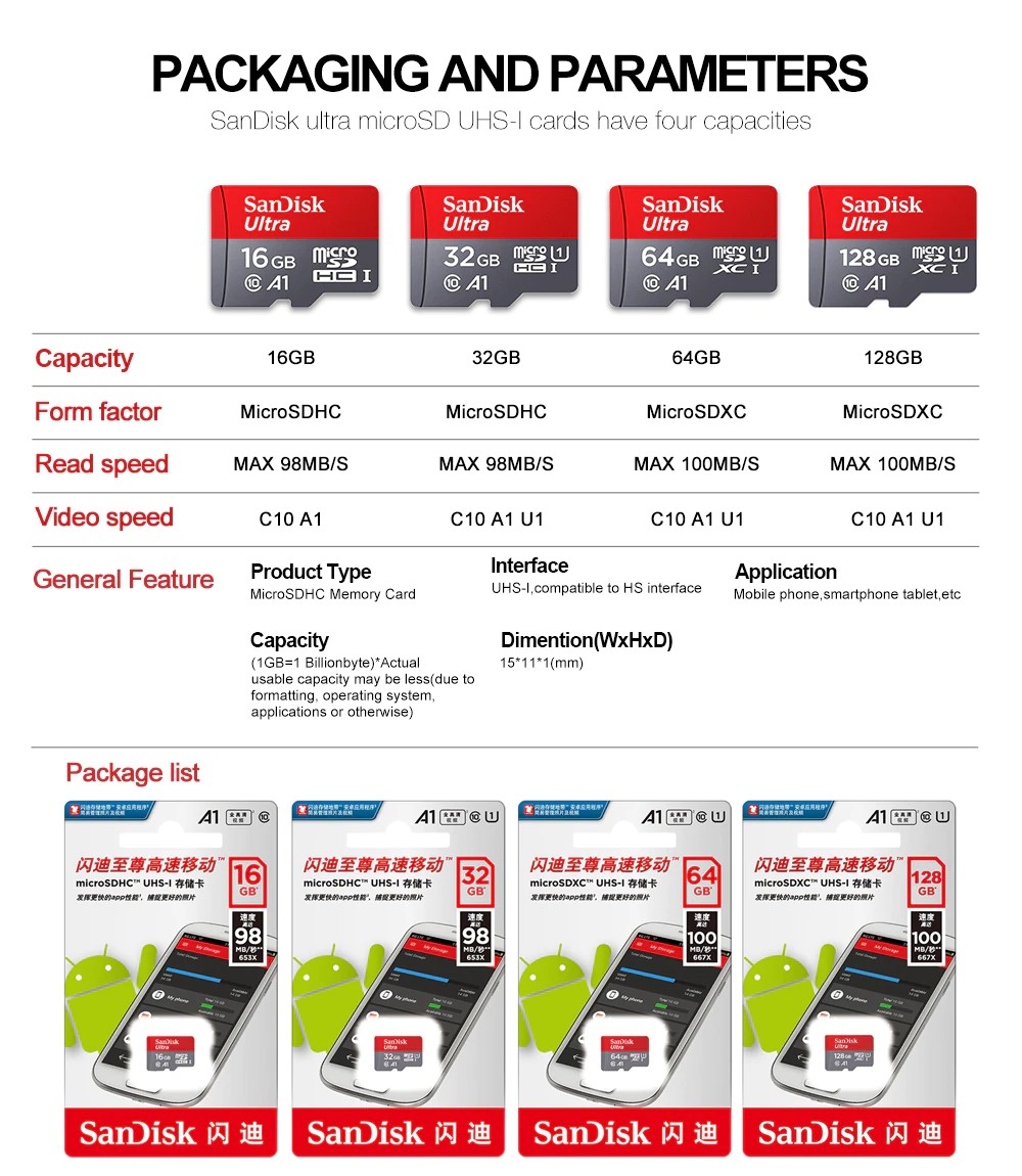 100% Originale Sandisk Classe 10 Sd Card Microsd Tf Card 16 Gb 32 Gb 64 128 256 Gb Scheda Di Memoria Micro Sd
