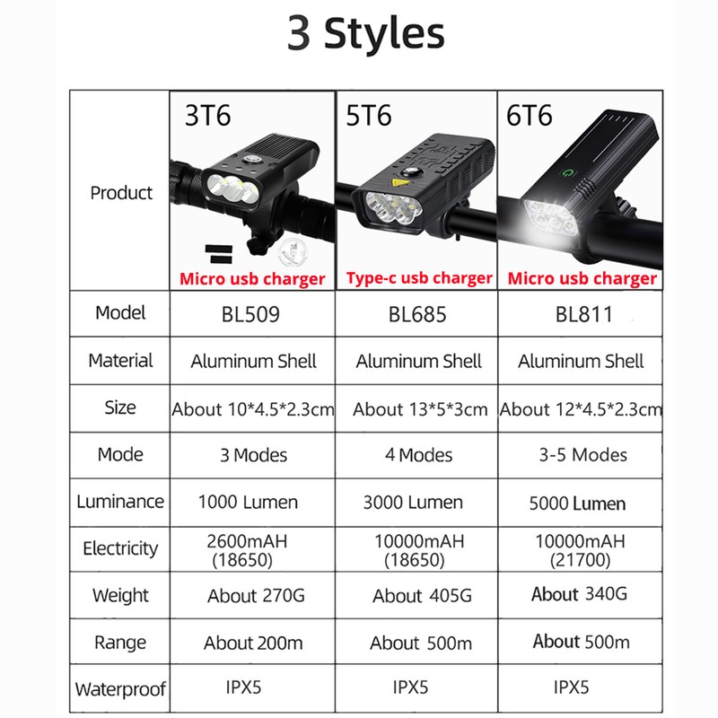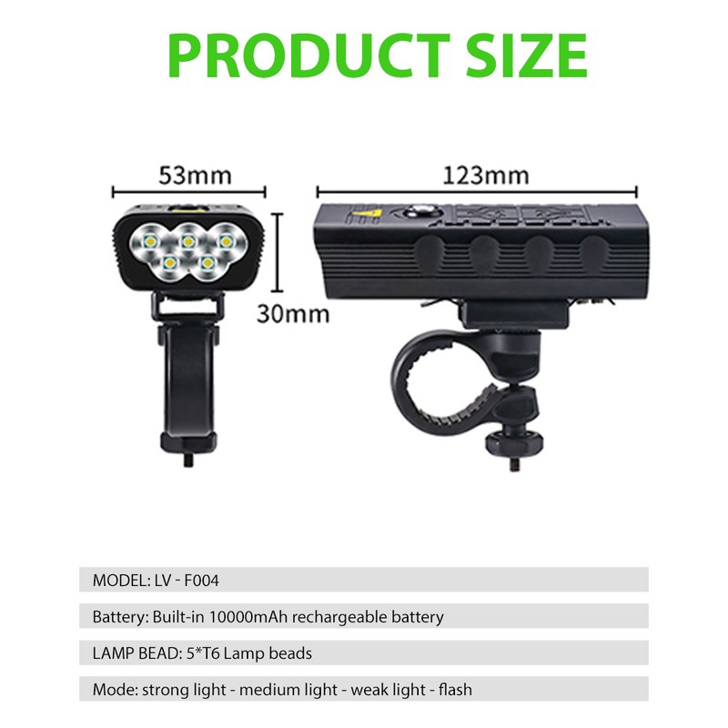 【 3/5/6 LED 5000 LUMEN luce della bicicletta di OUTPUT】The è molto luminoso, la potenza massima è di 5000 lumen, e le cinque luci a LED coprono una vasta gamma di, che consente di guidare di notte per vedere più ampia e ulteriori aree, E dotato di fanali posteriori della bicicletta per rendere il vostro viaggio più sicuro.