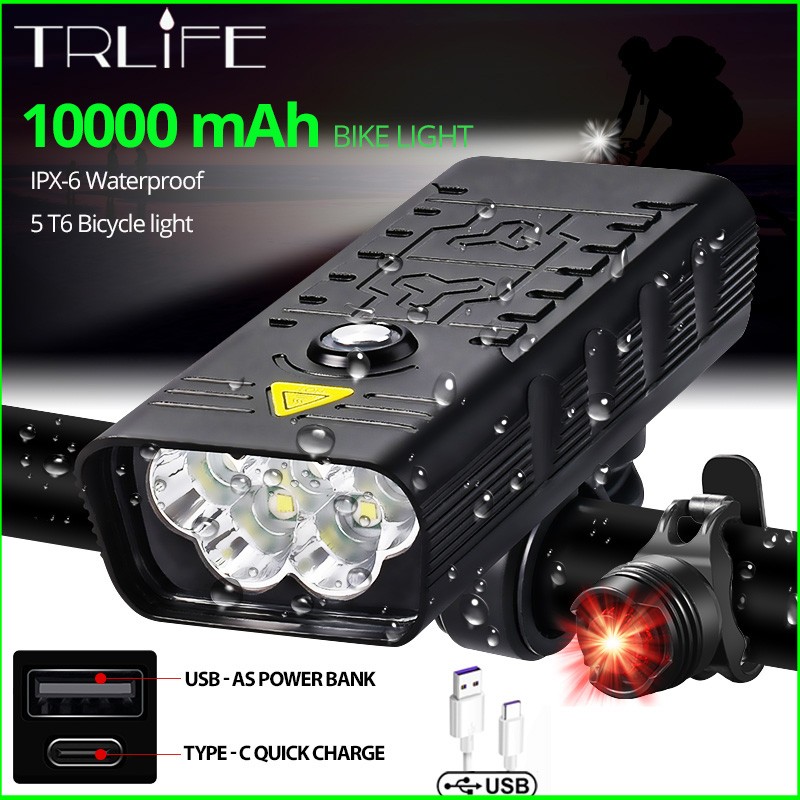 10000Mah Luce Per Bici Ricaricabile Usb 5000 Lumen Faro Per Bici 6T6 Led Torcia Super Luminosa Luci Anteriori E Luce Posteriore Posteriore