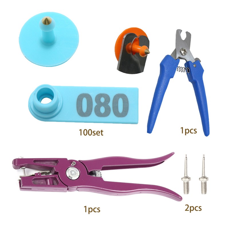 100Pc orecchio tag + 2Pc orecchio tag ago + 1Pc viola orecchio tag pinza + 1Pc sforbiciare orecchio tag pinza