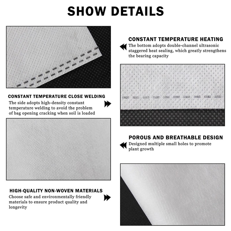 Ultrasuoni ad alta-densità temperatura costante sul lato del sacchetto di scuola materna, la saldatura è più uniforme e non è facile da decifrare con una migliore resistenza. Il bordo per piantina borsa è sigillato da ultrasuoni doppio-way sfalsati termostatico di calore, che ha una migliore capacità di carico e non è facile da decifrare quando riempito con il suolo.
