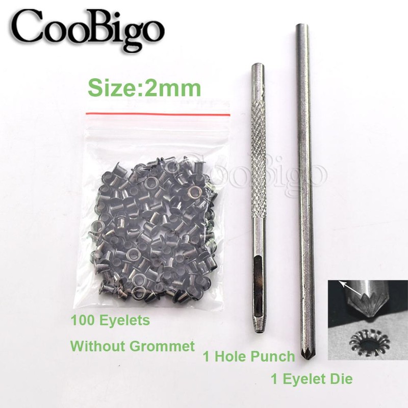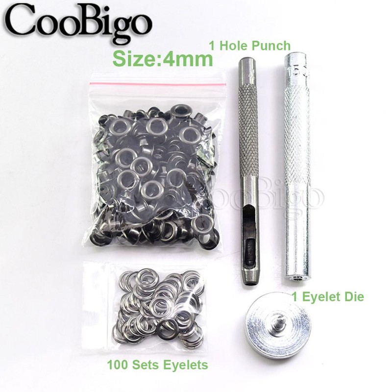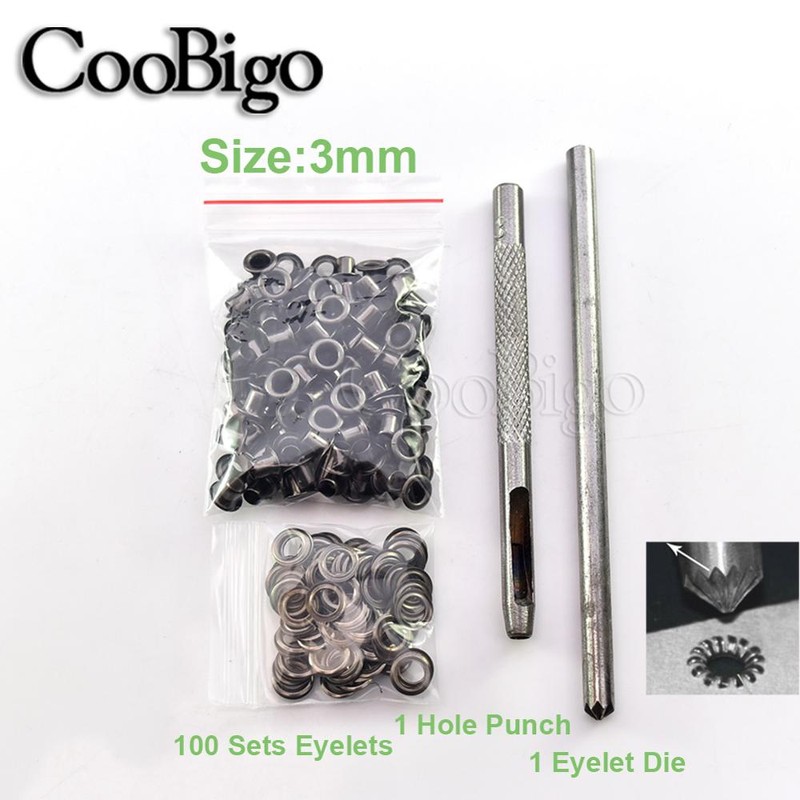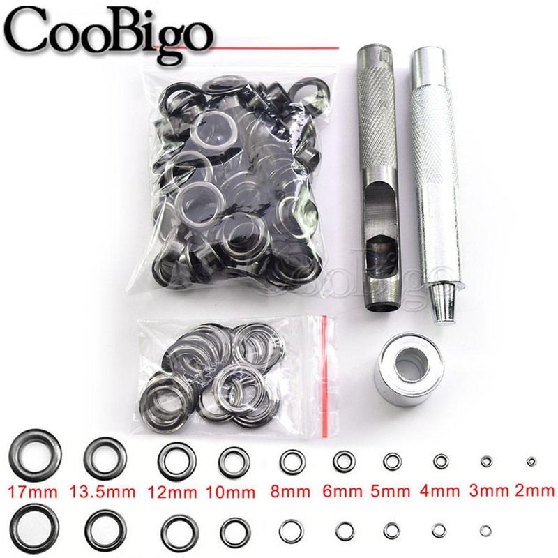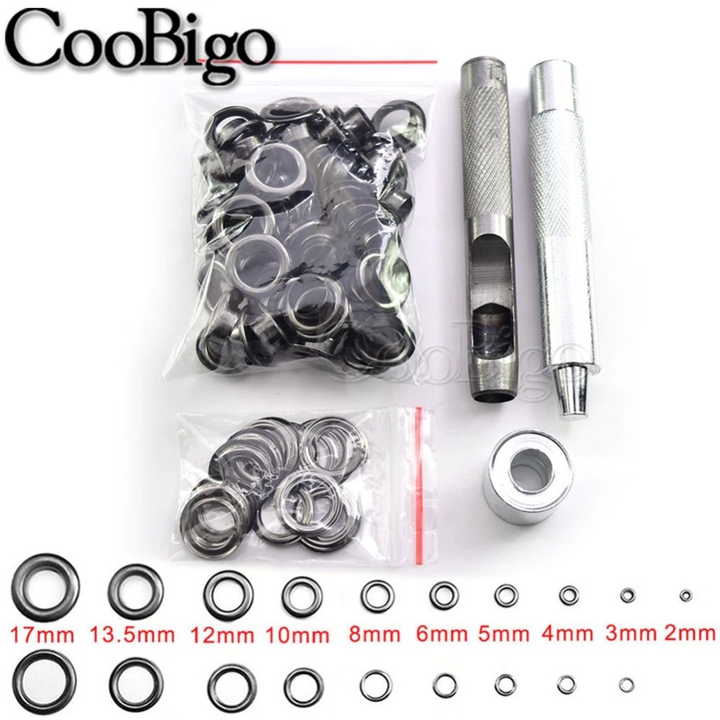 100Set Occhiello In Nichel Nero E Occhiello Punch Die Tool Set Per Abbigliamento In Pelle Scarpe Marsupio Passacavo Banner 2Mm - 17Mm
