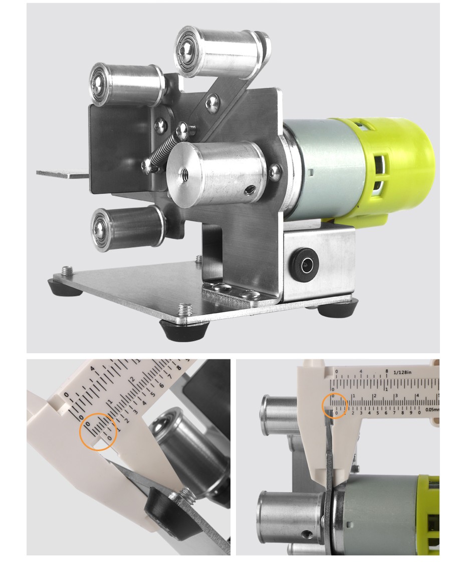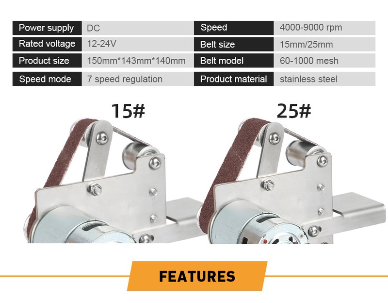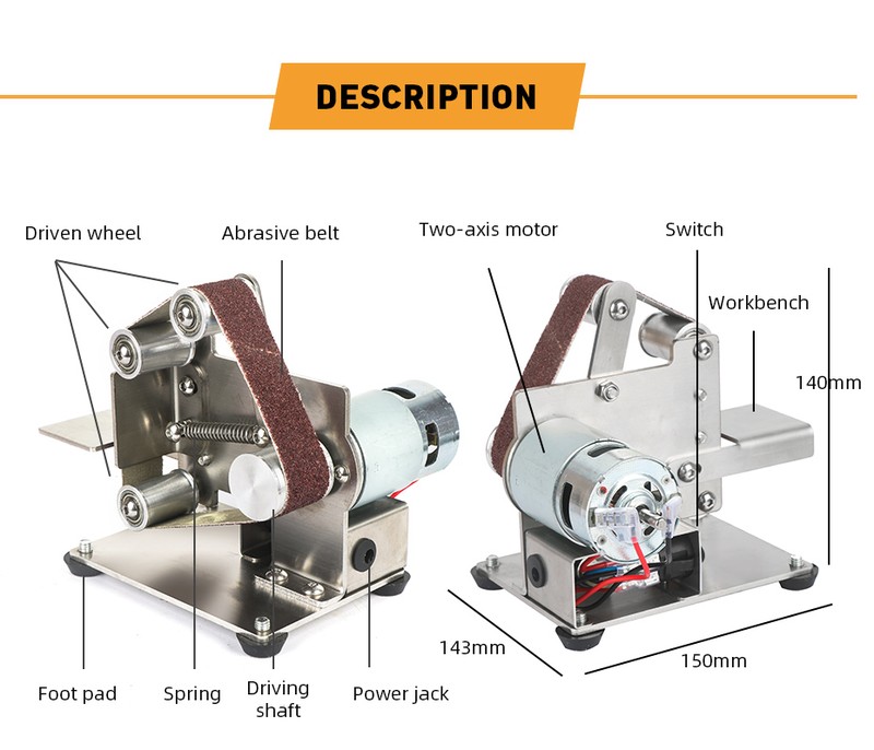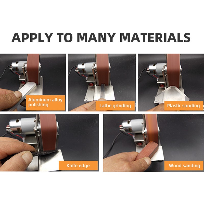 Questo è un multifunzionale levigatrice a nastro, mini portatile, a basso rumore, può essere utilizzato per alta-velocità di punta da trapano in acciaio sgrossatura, lama bordo, fine macinazione in acciaio al tungsteno utensile di tornitura, lucidatura radice Bodhi, ecc, facile da installare e da utilizzare, È una casa FAI DA TE strumento.