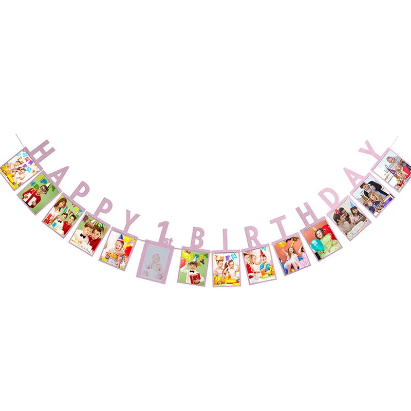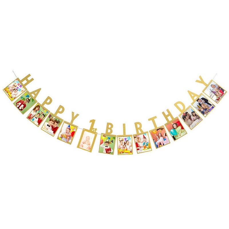 12 Mesi Photo Frame Banner First Happy Birthday Party Decoration Kids 1St Baby Boy Girl One Year Birthday Supplies Baby Shower