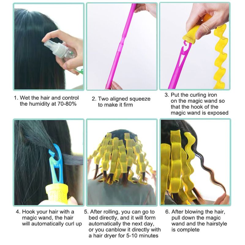 12Pcs Bigodini Magici 25 30 45 50 65Cm Bigodini Per Capelli Portatili Fai Da Te Bastoncini Durevoli Bellezza Trucco Curling Strumenti Per Lo Styling Dei Capelli