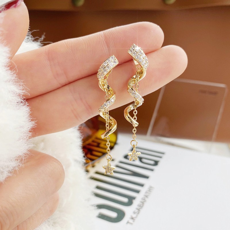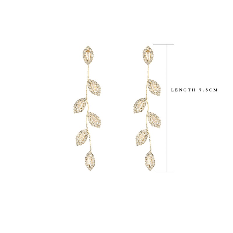 Juwang Lusso 14K Vero Placcato Oro Foglie Orecchino Delicato Micro Intarsiato Zircone Cubico Cz Orecchini Ciondolo Gioielli Da Sposa
