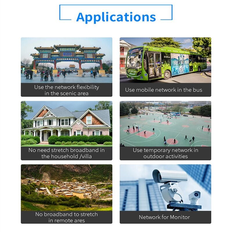 Applicabile alla maggior parte dei paesi in Asia, ad esempio come Israele, Corea Del Sud, India, Kazakistan, sri Lanka, Thailandia, Giappone, Singapore, Indonesia, ecc. CPE905-3: FDD(B1/B3/B7/B8/B20), TDD(B38/B39/B40/B41), WCDMA(B1/B8), GSM(B3/B8).