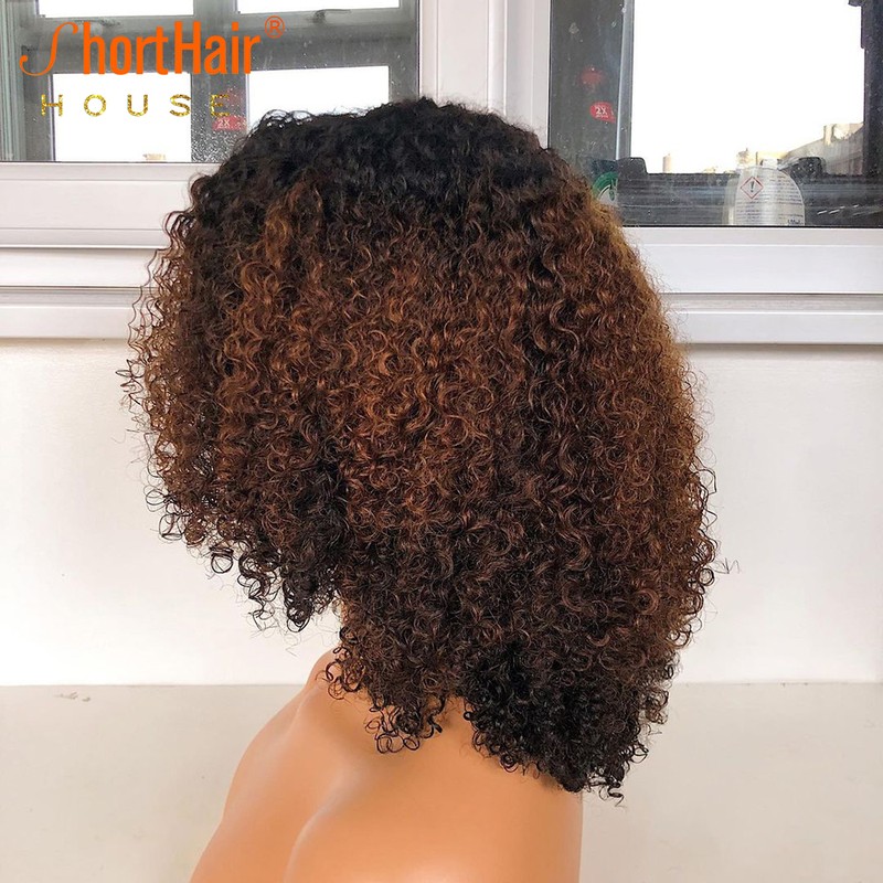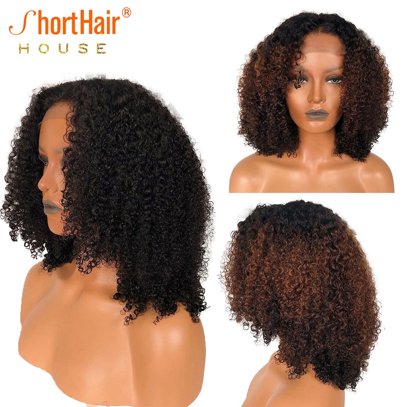 Ombre 1B/30 Parrucche Frontali Corte In Pizzo Riccio Per Donna Parrucca Parte T Parrucca Bob Parrucche Brasiliane Per Capelli Ricci Remy Pre-Pizzicate