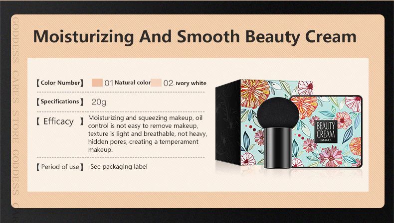 Istante di trucco per una naturale, look perfetto. Immediatamente nasconde le imperfezioni, macchie scure e arrossamento, e leviga-tono della pelle non uniforme per una bella, naturale e luminosa aspetto. La sua proprietà idratante e olio di controllo mantenere la pelle fresca e confortevole per tutta la giornata. UN morbido, Luce-peso e non-grassa crema che fornisce intensa idratazione della pelle e nutrimento. Ringiovanimento formula che promuove la l'elasticità della pelle, rassodante e un più agevole di tono. Specifiche: tipo Dell'articolo: BB CreamColor: colore naturale, avorio whiteSkin Tipo: GeneralWhether protezione solare: yesNet contenuto: 20gPackage Ha Incluso: 1 * Crema di BB, 1 * testa a Fungo spugna soffio