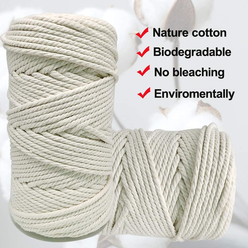 Corda Intrecciata In Cotone Naturale 2-100M 1/2/3/4/5/6/8/10Mm Corda In Cotone Macramè Corda In Spago Artigianato Fai-Da-Te Maglieria Natale Matrimonio Deco