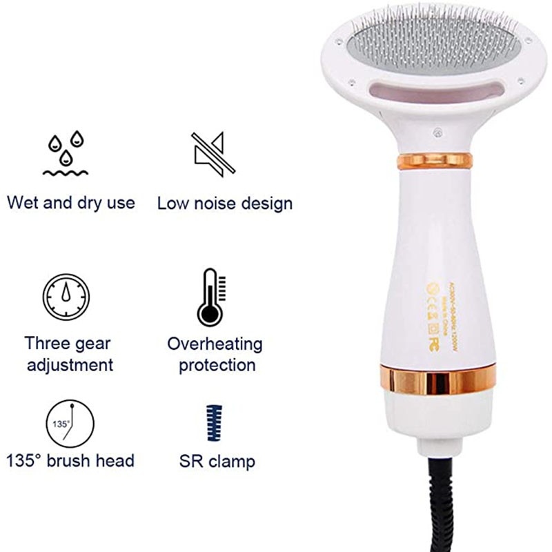 [2-in-1 funzione] Questo prodotto geniale combina asciugacapelli e pet pettine. Asciugatura rapida e governare di animali domestici sono eseguita allo stesso tempo.