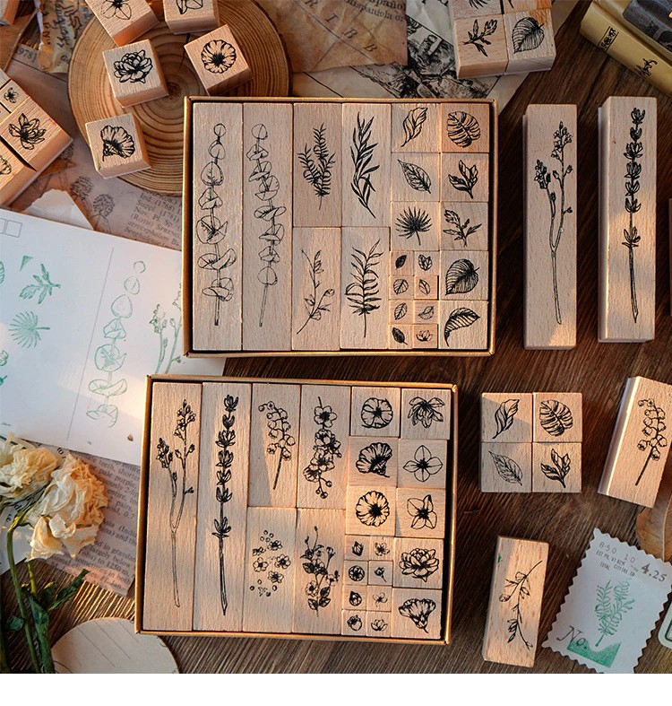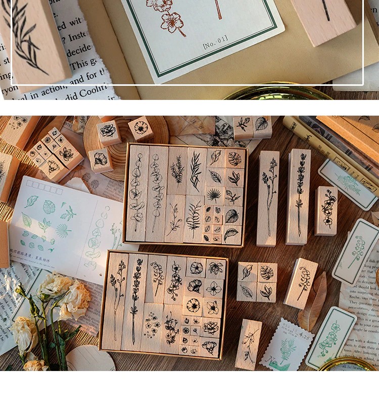 22 Pz/Set Timbri In Gomma Montati In Legno Pianta E Fiore Decorativo Timbro Gomma In Legno Impostato Per Fai Da Te Diario Artigianale Scrapbooking