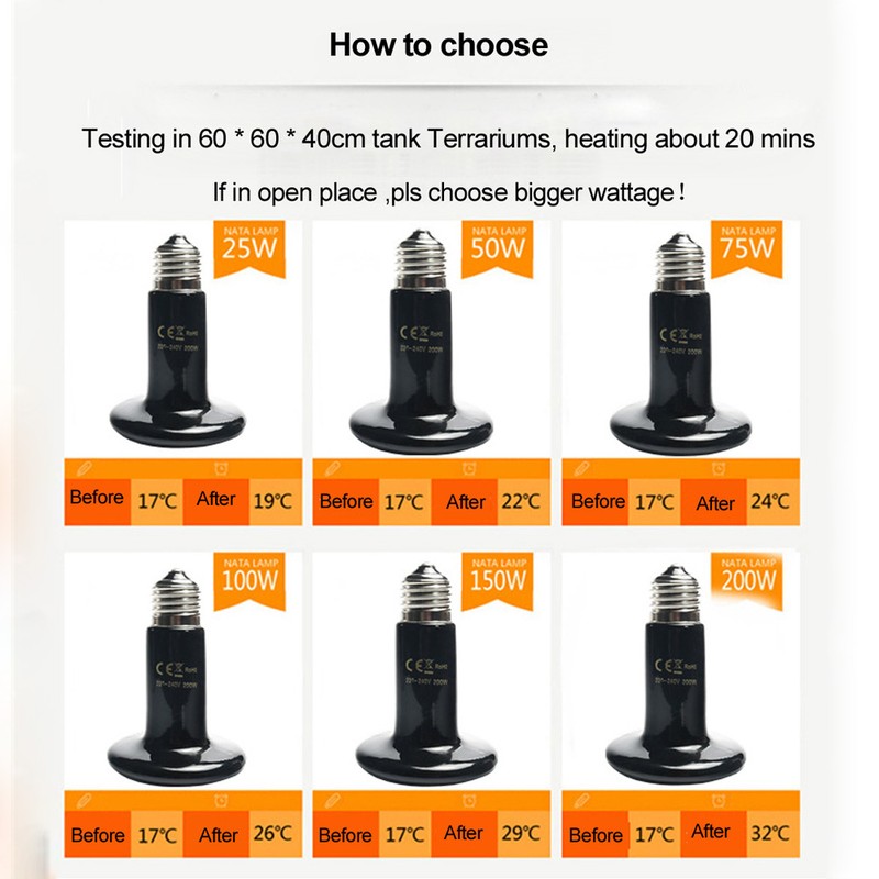 Questo IR lampadina riscaldamento è una buona cosa per il vostro rettile animali domestici, come ad esempio i serpenti, lucertole, tartarughe, pulcini. E 'in grado di mantenere la vostra bella animali domestici caldo in inverno freddo.