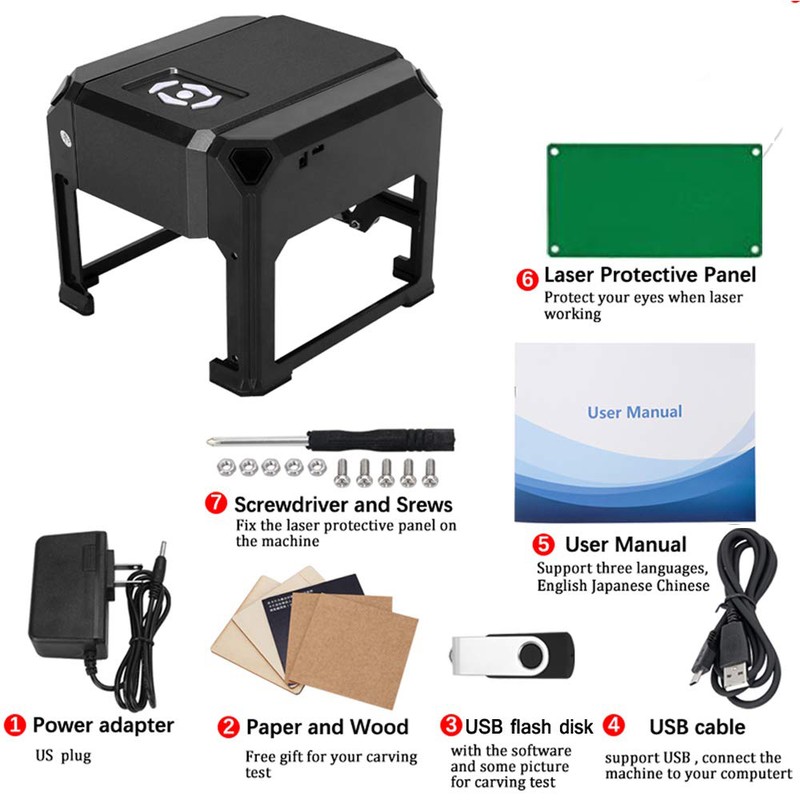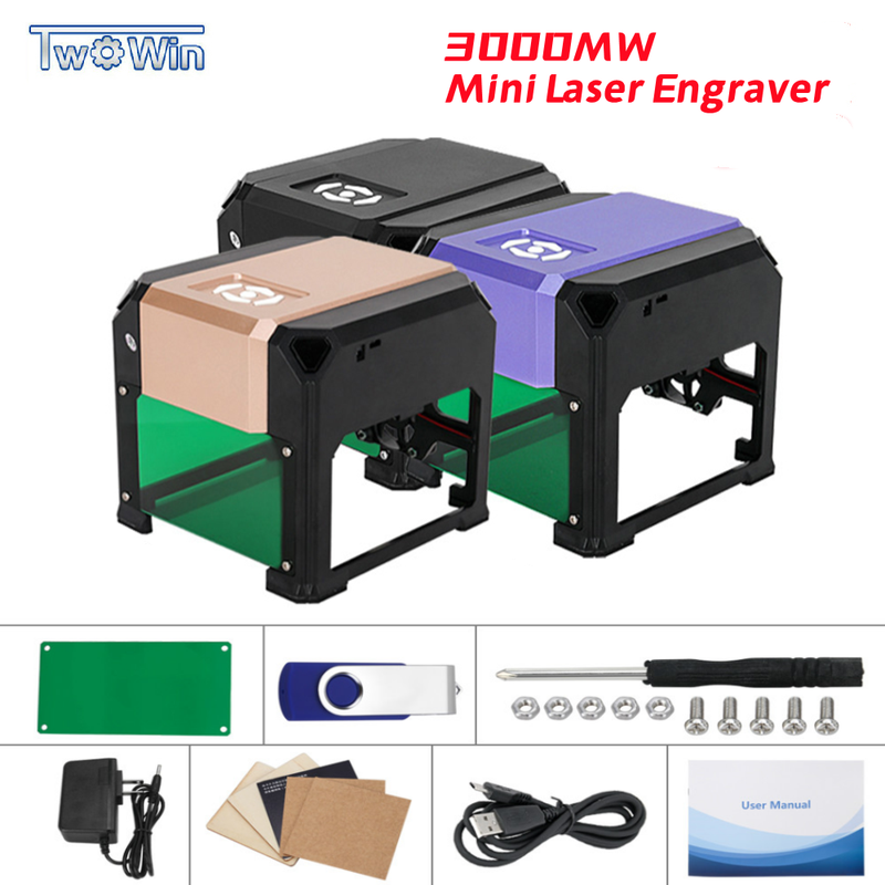 3000 Mw Del Laser Di Cnc Incisore Fai Da Te Logo Marchio Stampante Incisione Laser Macchina Di Lavorazione Del Legno 80X80Mm Incisione Gamma