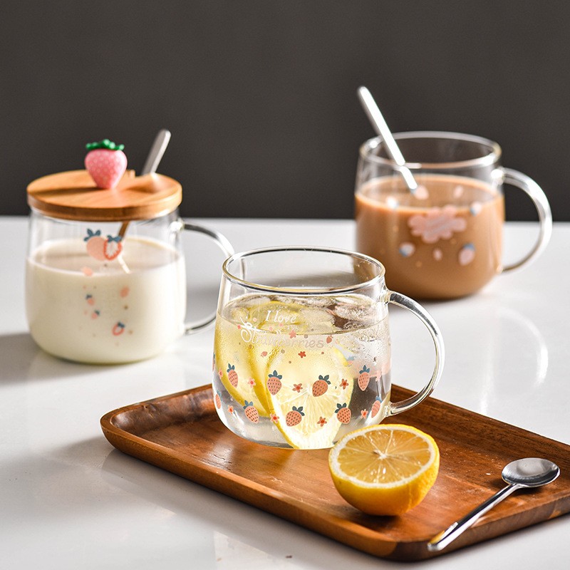 Novità Coperchio 3D Cartone Animato Fragola Simpatico Bicchiere D'Acqua Tazza Trasparente Bere Bicchieri Borosilicato Caffè Latte Succo Tazza Di Bicchieri