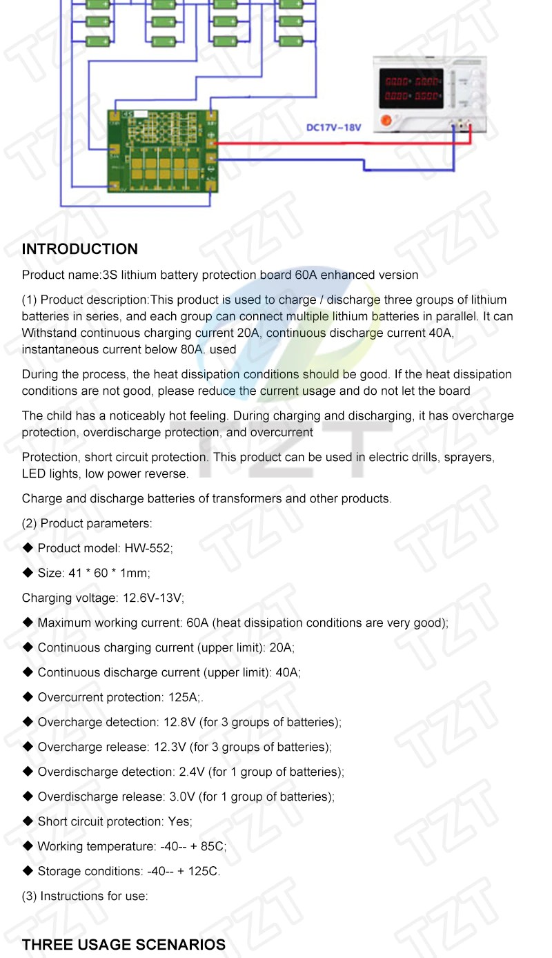 Numero modello: 3S 4S 40A 60A Li-ion Litio Batteria