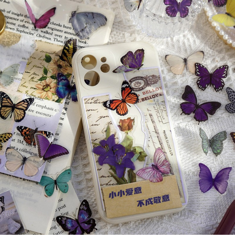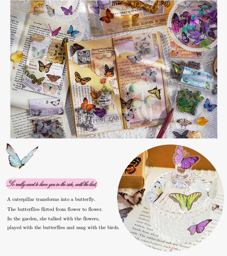 40 Pcs Eleganti Adesivi A Farfalla Pet Decalcomanie Decorative Trasparenti Per Telefono Laptop Waterbottle Planner Diario Scrapbook