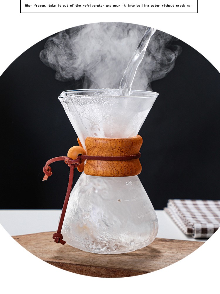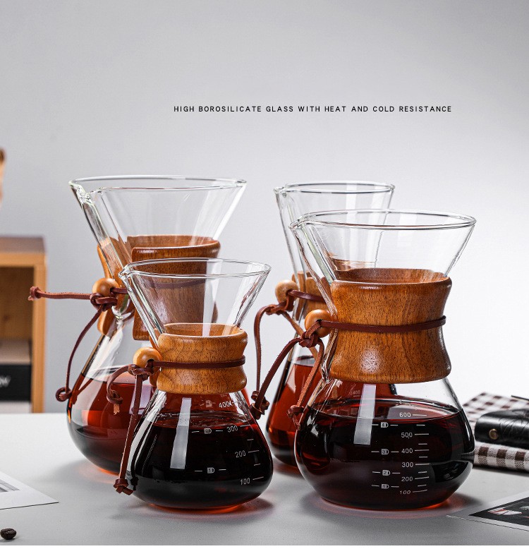 400Ml 600Ml 800Ml Vetro Resistente Bollitore Per Caffè Filtro In Acciaio Inossidabile Gocciolatore Anti-Scottatura Manico In Legno Birraio Pentola Barista Strumenti