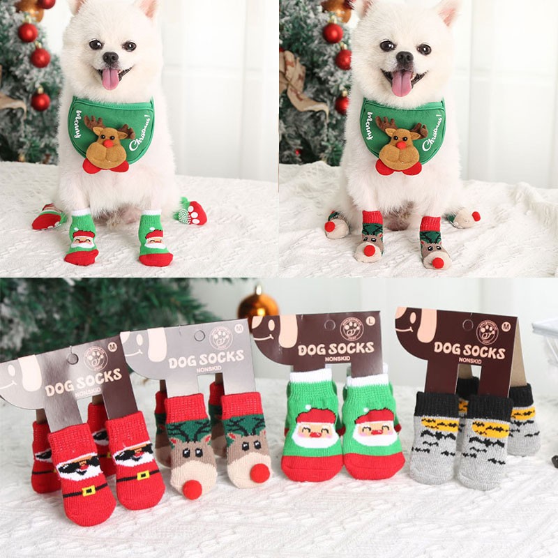 4 Pz/Set Autunno Inverno Calzini Per Cani Da Compagnia Antiscivolo A Maglia Per Cani Di Piccola Taglia Scarpe Spesse Calde Zampa Protettore Simpatico Cucciolo Gatto Abbigliamento Da Interno Stivale