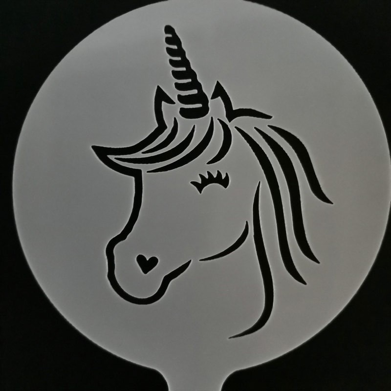 4pcs Unicorn Design Caffè Latte Cappuccino Barista Art Stencil Cookie Cupcake Latte Caffè Muffa Della Stampa Della Torta Che Decora Gli Attrezzi Formato: circa 8 centimetri 100% Nuovo di zecca E di Alta Qualità Materiale: durevole Food Grade Materiale PET Test: LFGB-SGS/FDA Craft: Laser avanzata Tecnica di Taglio Grande per fare di fantasia Cappuccino, Caffè, Latte o Cioccolata Calda.