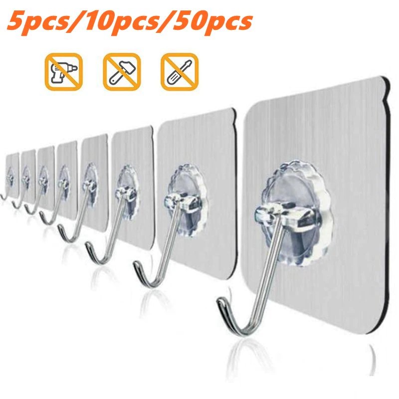 5/10/30/50Pcs Ganci Da Parete Trasparenti Per Bagno Ganci Autoadesivi Impermeabili Antiolio Gancio Per Appendere Senza Cuciture Riutilizzabile Per Cucina