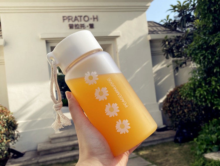 Bottiglie Di Acqua Di Plastica Trasparenti Della Piccola Margherita 500Ml Bpa Bottiglia Acqua Glassata Creativa Libera Con La Tazza Tè Portatile Di Viaggio Della Corda