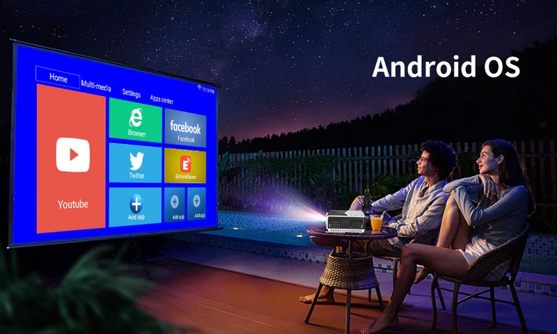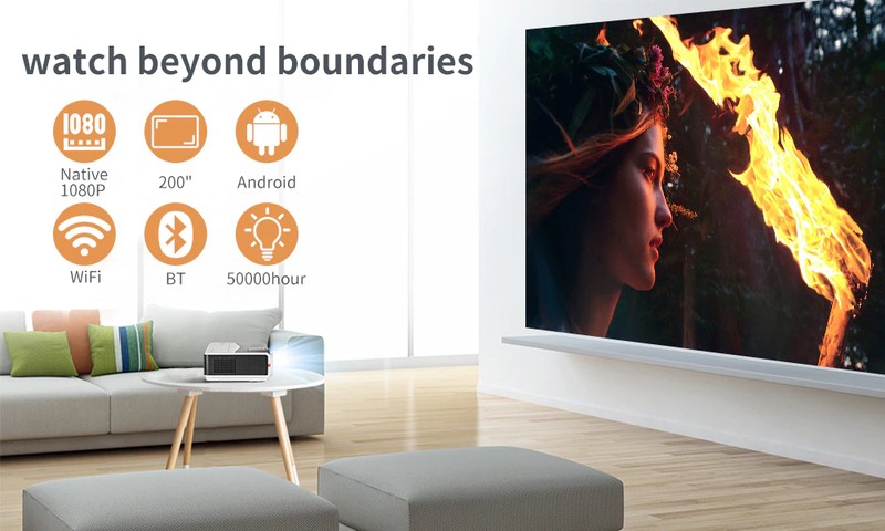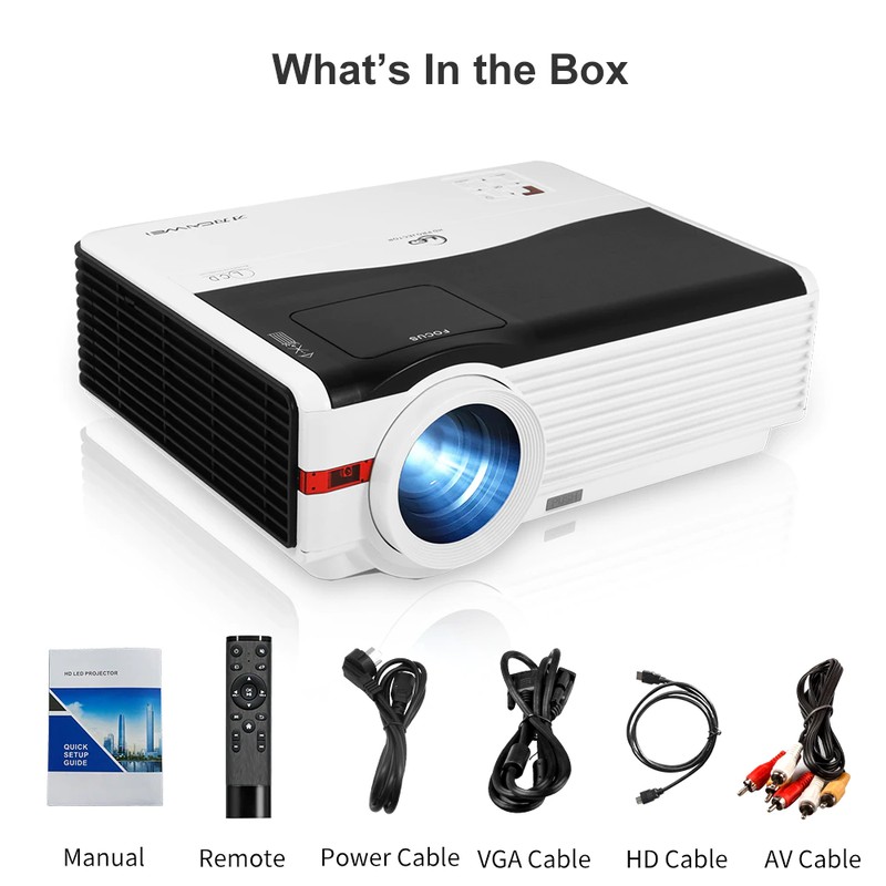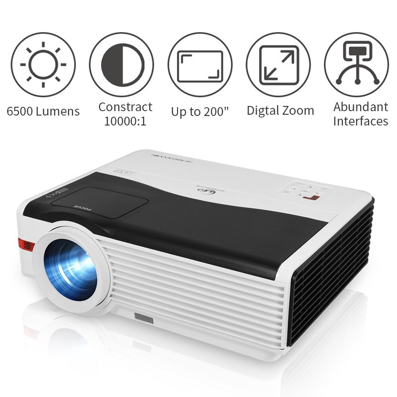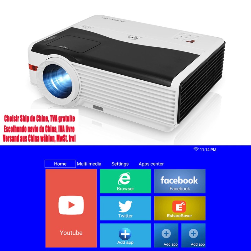 Questo è A9AB Proiettore, ha risoluzione nativa 1080p, la qualità dell'immagine è così in alto. Il proiettore è in grado di progetto di 200 pollici di schermo di grandi dimensioni. Ha funzione di wifi e blue-tooth. Il proiettore è dotato di 6000 lumen della lampada.