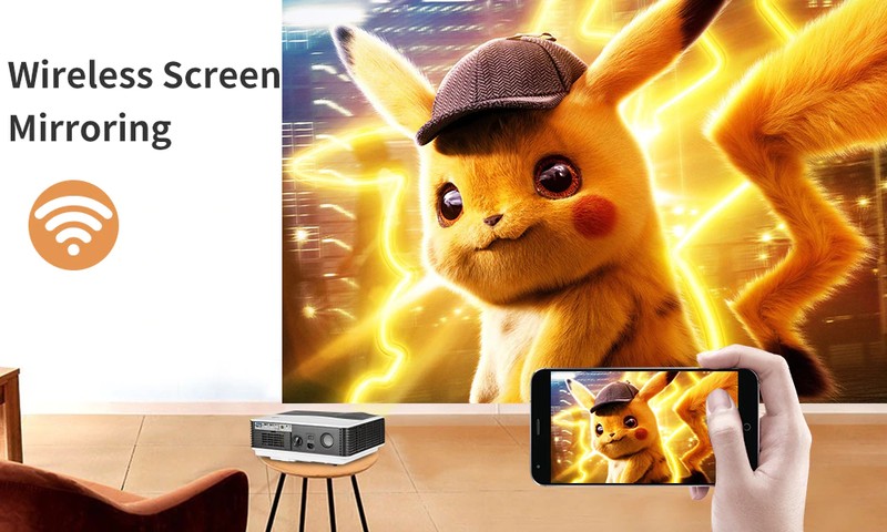 Il proiettore senza fili di sostegno airplay, basta fare il proiettore e il telefono si collega con la stessa wifi. Il proiettore in grado di proiettare ciò che il telefono è in riproduzione, È possibile guardare film dal piccolo schermo al grande sceen.