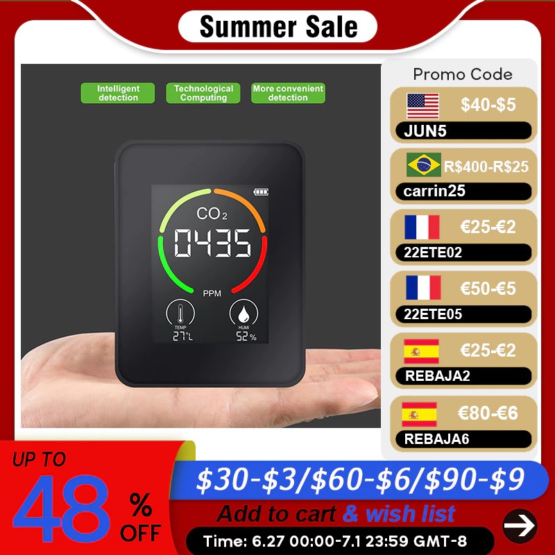 Monitor Dell'Aria Rilevatore Di Anidride Carbonica Co2 Magazzino Serra Qualità Dell'Aria Temperatura Umidità Monitor Misuratore Di Misurazione Veloce
