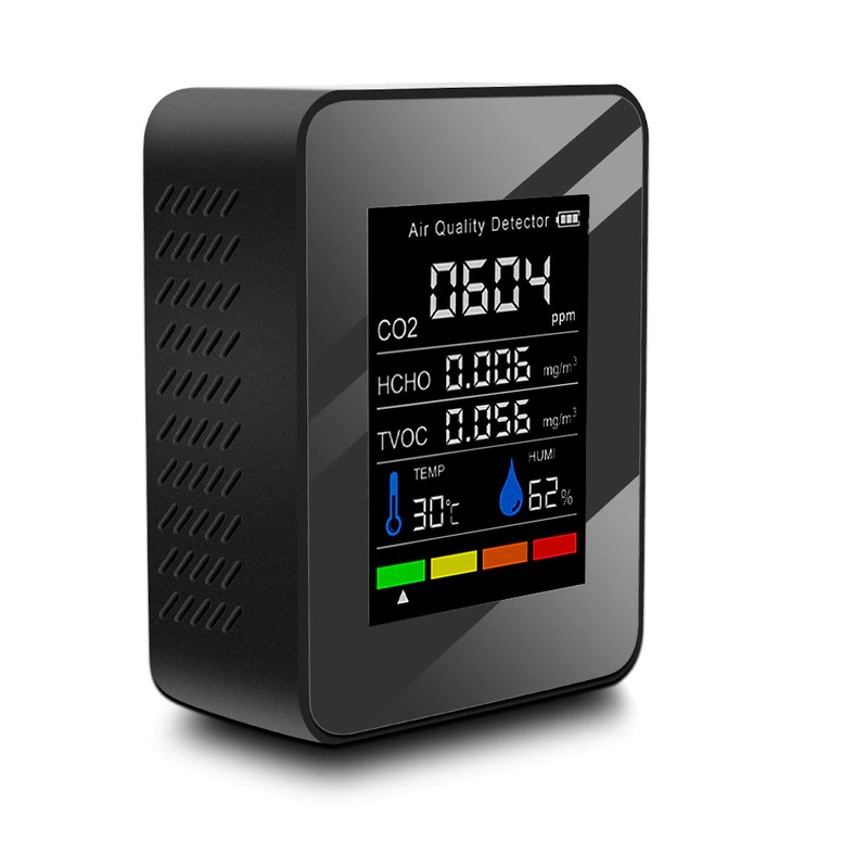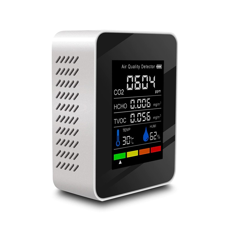 Questo è un tipo di qualità di qualità dell'aria rivelatore, dimensioni compatte, leggero e portatile. Adotta alta precisione sensori a semiconduttore, rilevamento in tempo reale, dati di aggiornamento automatico, auto-calibrazione con multi-uso. Grande display LCD a colori, si può vedere la quantità di energia elettrica, CO2 valore, PM2.5 valore, TVOC valore, valore HCHO, la temperatura e l'umidità in modo chiaro. Ampiamente applicazioni: piantagione agricola, ortaggi in serra, magazzino di produzione, lavorazione dei materiali, interno di casa, uffici commerciali, e così via.