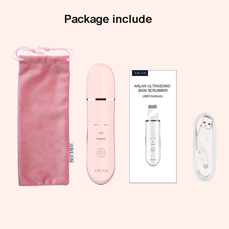 Marca: ANLAN Nome del prodotto: Ultrasuoni Scrubber Pelle Tensione: DC 5V Capacità della batteria: 500mAh Potenza nominale: 1.5W Materiale del prodotto: ABS Formato del prodotto: 43x15x172mm Peso netto: 76g Tempo di uso continuo: 50 minuti Tempo di ricarica: 2H