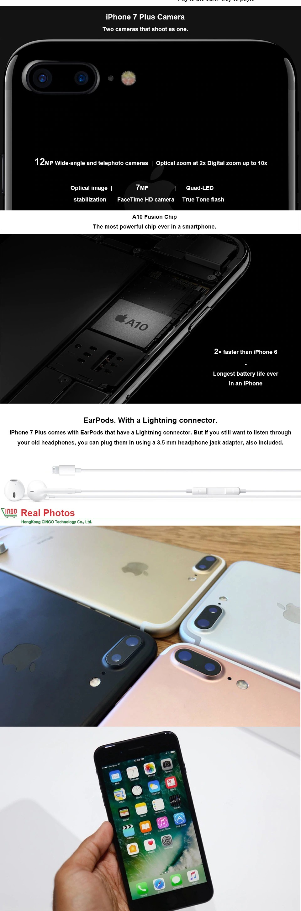 Apple Iphone 7 Plus 3Gb Ram 32/128Gb/256Gb Ios Cellulare Lte 12.0Mp Fotocamera Apple Quad-Core Fingerprint 12Mp 2910Ma