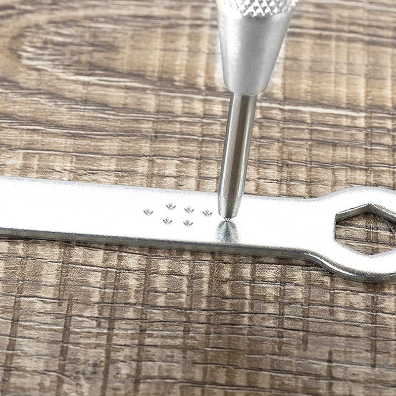 ** Buona qualità: Fatto da alta acciaio al carbonio, robusto e di alta durezza, automatico centro pugno è uno strumento con un conico point, che viene utilizzato di effettuare un rientro in un oggetto;