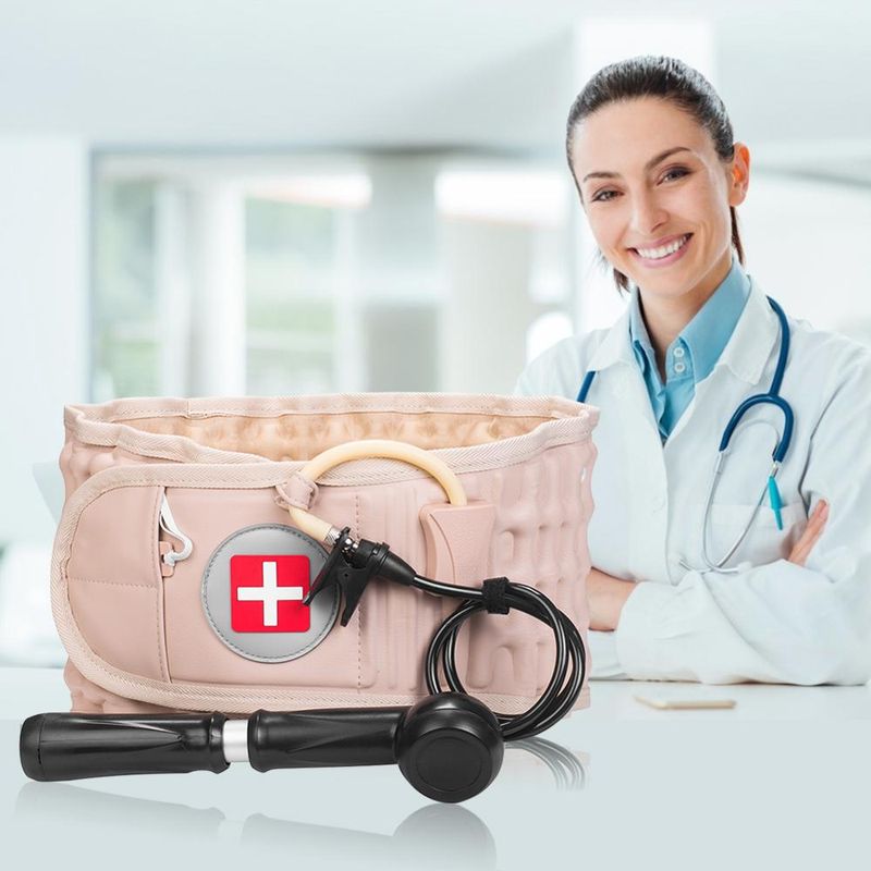 Che indossa la cintura contro la pelle direttamente o su larghi abbigliamento, che indossa la cintura tra il più basso gabbia toracica e hip, allegando la cintura con fermezza, clip pompa su la valvola del gas di la cintura, e poi gonfiare la cinghia di pompaggio la pompa, il più efficace effetto di trazione si ottiene quando il pilastri di cintura di aria sono completamente gonfiato