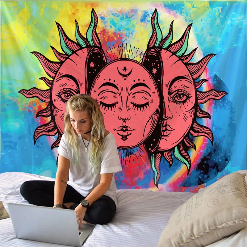 Bella Faccia Psichedelica Stampa Grande Parete A Buon Mercato Hippie Appeso A Parete Arazzo Da Parete Bohémien Mandala Wall Art Decoratio