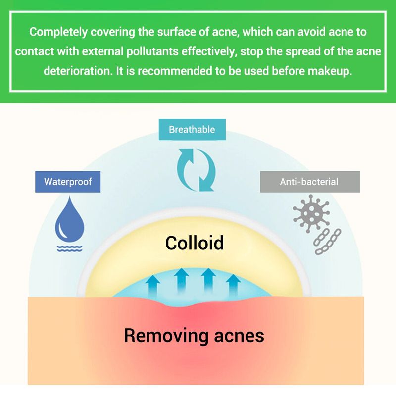 Completamente che copre la superficie di acne, che può evitare di acne di mettersi in contatto con sostanze inquinanti esterno in modo efficace, fermare la diffusione di la acne deterioramento. Si raccomanda di essere utilizzato prima del trucco.