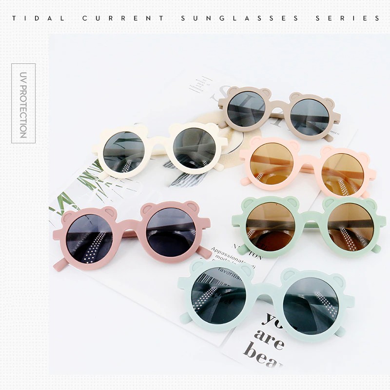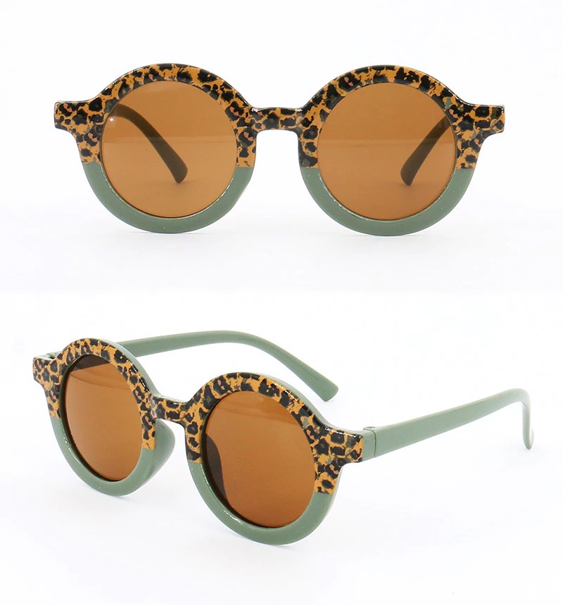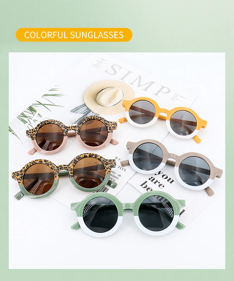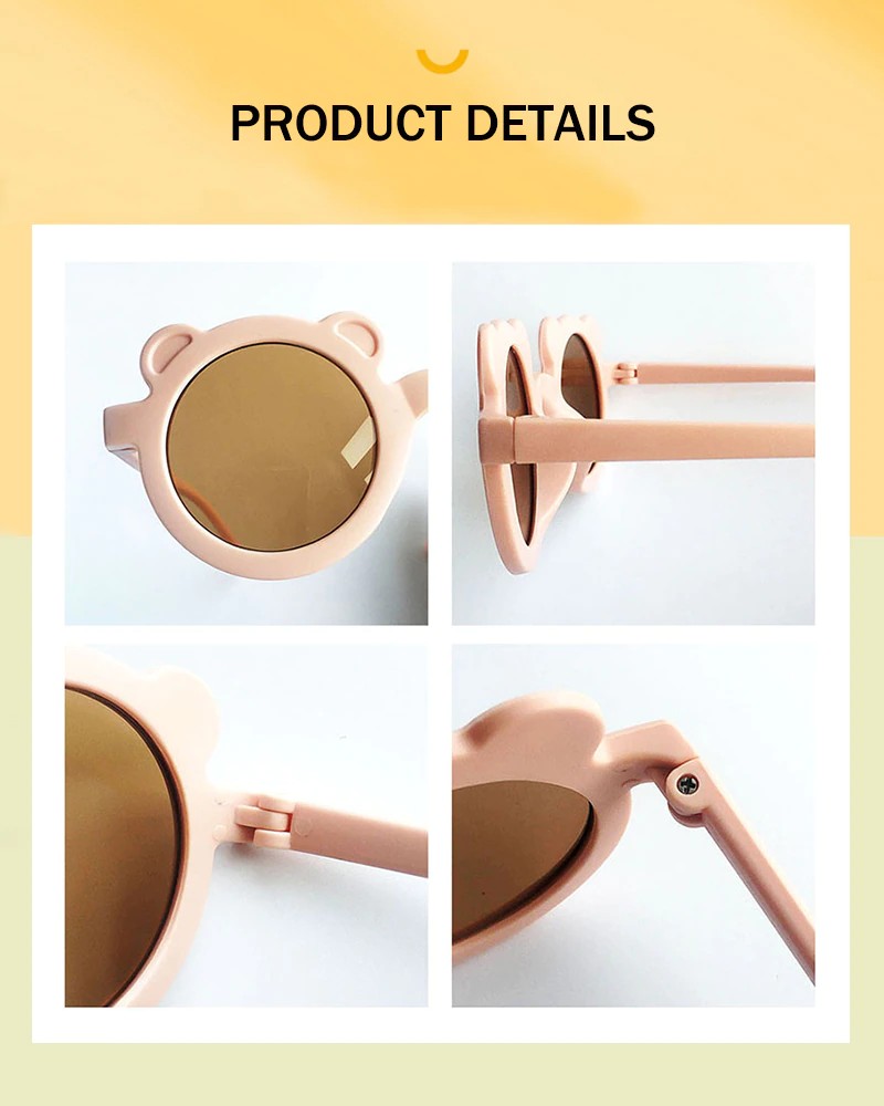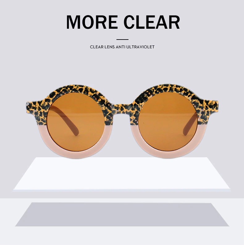 Children Boy Girl Cute Leopard Double Color Cartoon Bear Shape Round Sunglasses Kids Vintage Glasses Uv400 Protection Classic