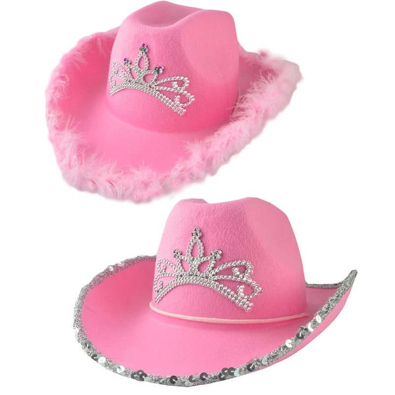 Cappellini Da Cowboy Rosa Corona Cappello Da Cowgirl Occidentale Per Donna Ragazza Bordo Piuma/Paillettes Lucide Tiara Cappelli Da Cowgirl Cappellini Fedora