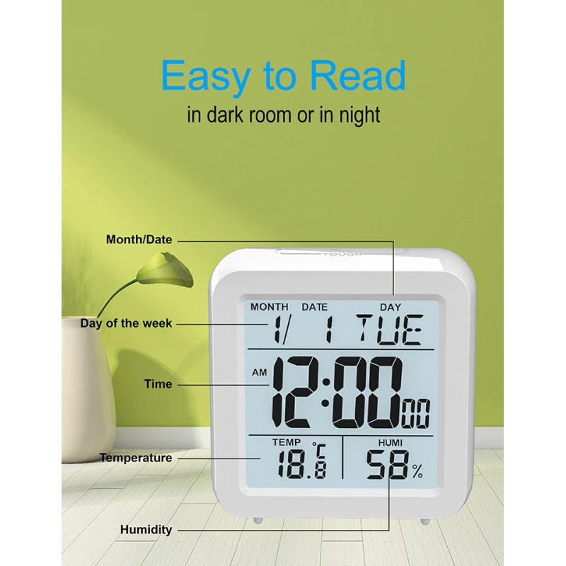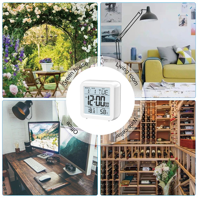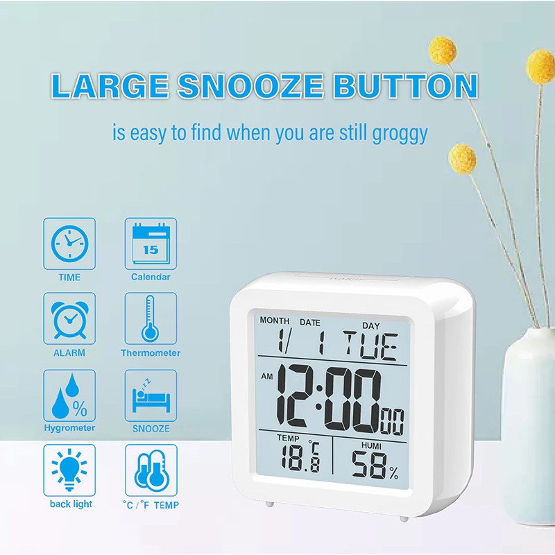 Orologio Da Tavolo Digitale Lcd Snooze Calendario Sveglia Orologio Da Camera Bianco Con Termometro E Igrometro Per Uso Domestico A Batteria