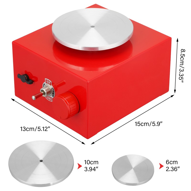 【WIDELY USE】Two Dischi Girevoli, Diametro: 6.5 centimetri/2.56in e 10cm/3.94in, questo piccolo professionale ruota di ceramica macchina è particolarmente adatto per la scuola di insegnamento e di ceramica negozio di FAI DA TE, per soddisfare i professionisti e gli appassionati di ceramica. Questa macchina è adatta per la ceramica di ceramica di lancio e plasmare processo, di ceramica di insegnamento e di intrattenimento.
