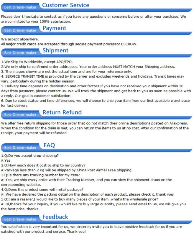 Nota: 1. Si prega di consentire errore di 1-3cm dovuto la misura manuale. Si prega di assicurarsi che non ti dispiaccia prima di fare un'offerta. 2. I colori possono avere diverse come la differenza di visualizzazione, vi prego di capire. ![]() ![]() ![]() ![]() ![]() ![]() ![]() ![]()