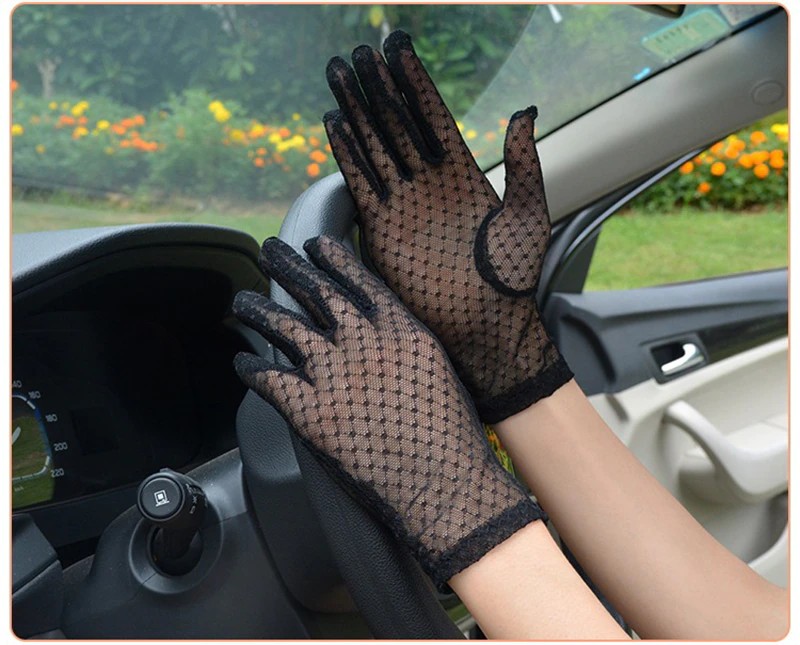 Guanti Da Donna Eleganti Ultrasottili Lunghi Estivi Da Ciclismo Guanti Sole Neri Sexy Da Donna Guanti In Maglia Di Pizzo Elastico Anti-Uv Femminile H98