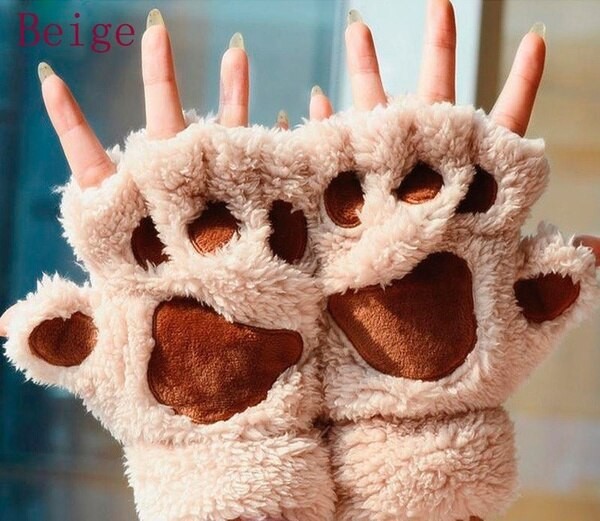 Fashion Girls Lovely Cat Claw Paw Guanti Di Peluche Warm Soft Plush Short Fingerless Women Leisure Bear Cat Guanti Mezze Dita Regali