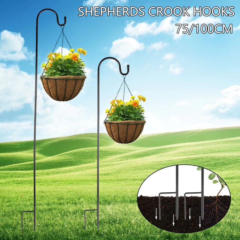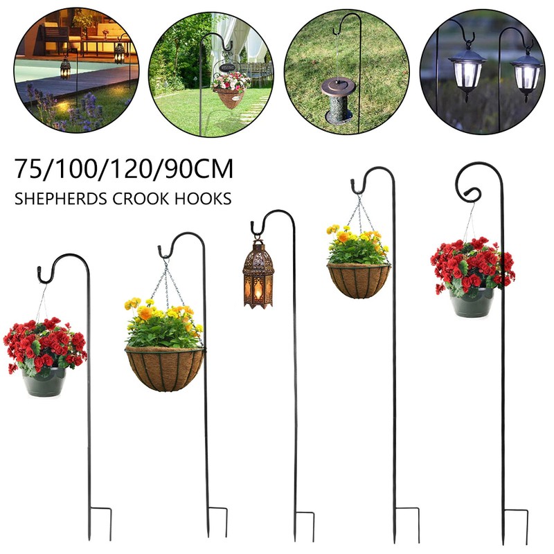 Vaso Da Fiori Da Giardino Palo Di Ferro Pastore Crook Ganci Luci Solari Lanterne Cestini Per Piante Appendiabiti Per Fiori Stand Festone Esterno Palo