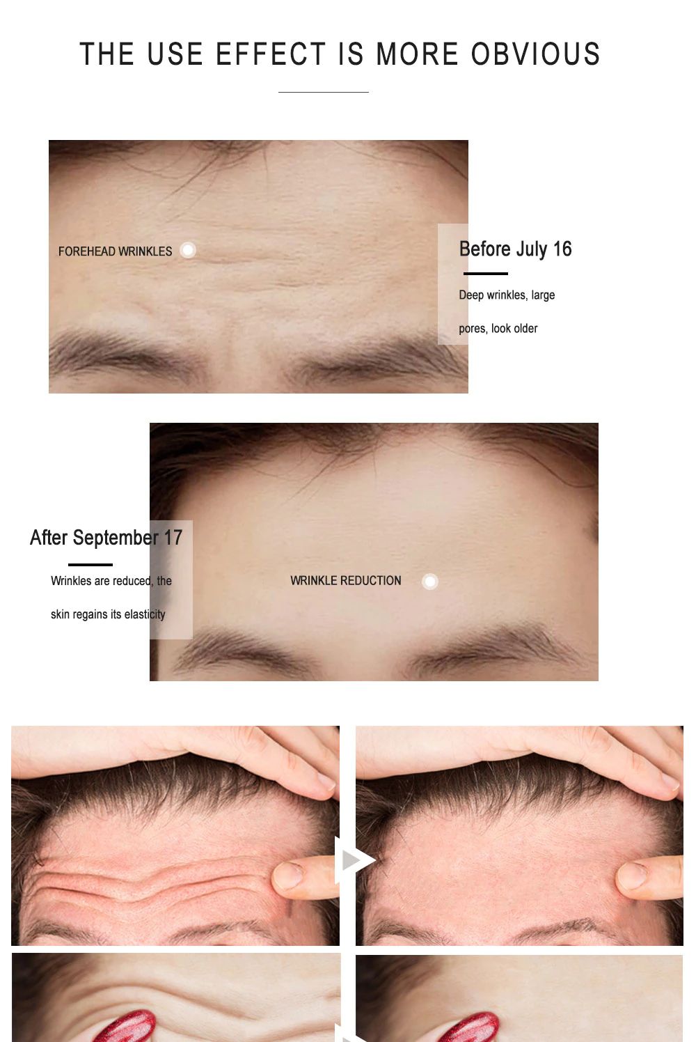 "L'effetto è grande, supereasy da usare. Questo è un prod-uct che può migliorare le rughe"