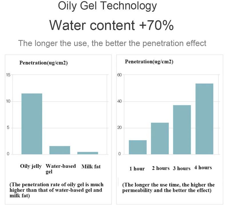 (Il tasso di penetrazione della pelle grassa gel è molto superiore a quello di gel a base di acqua e grasso del latte)
