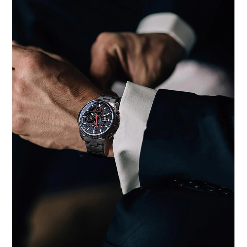 -Movimento mano meccanico a carica automatica permette di indossare l'orologio in qualsiasi momento.