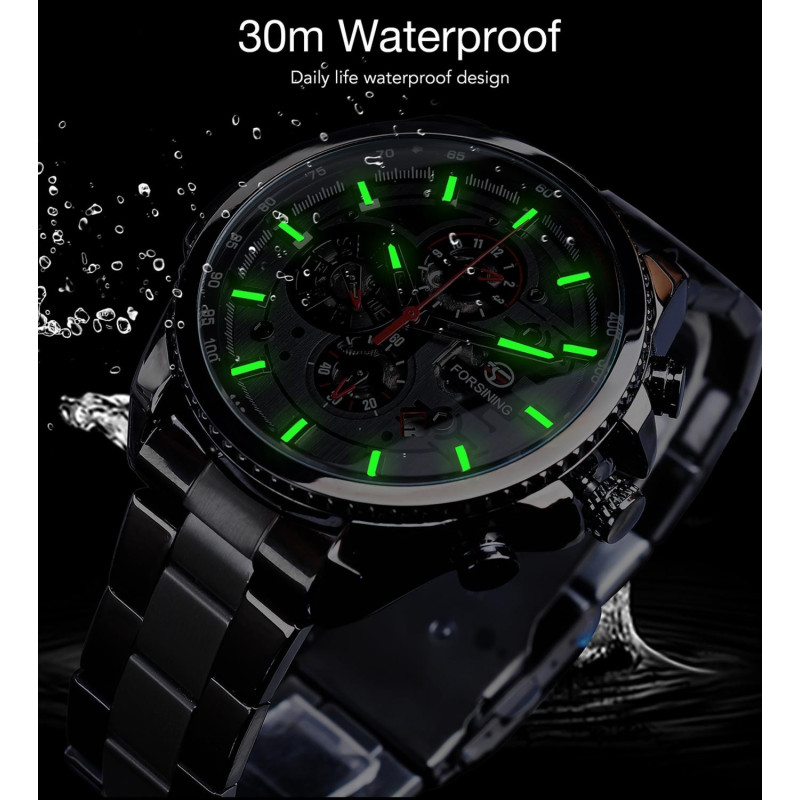 Forsining Tre Quadrante Calendario Degli Uomini In Acciaio Inox Meccanico Automatico Da Polso Orologi Top Brand Di Lusso Di Sport Militare Orologio Maschile