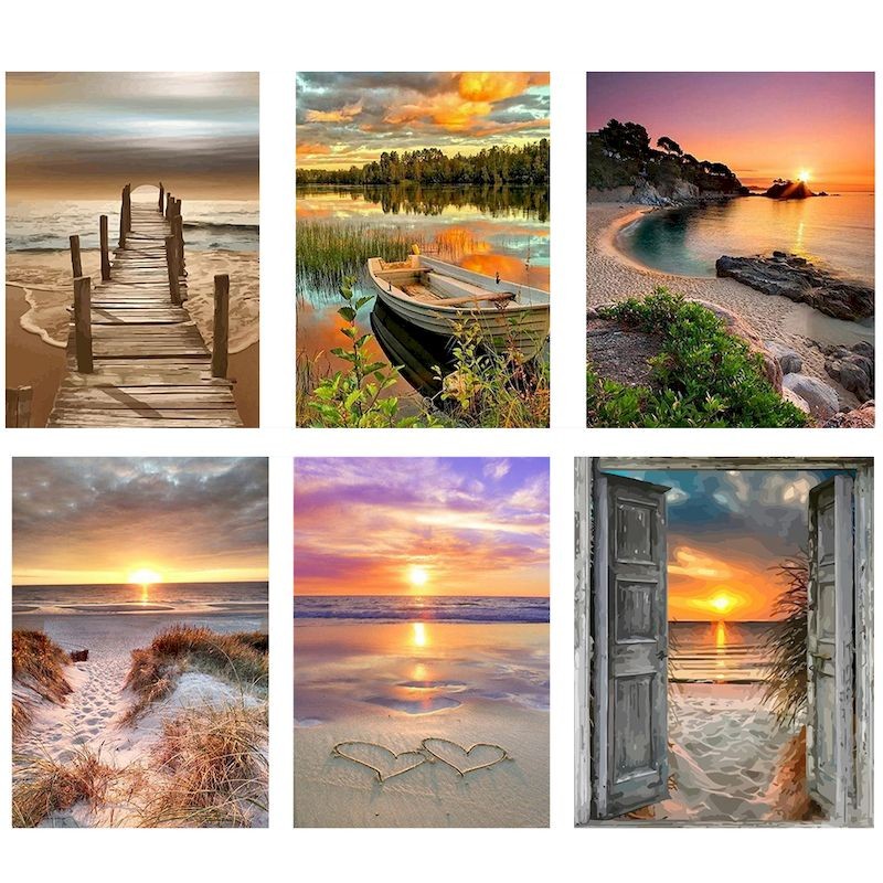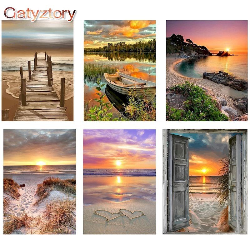 Gatyzproductcornice Spiaggia Di Sabbia Pittura Dai Numeri Per Adulti Bambini Dipinti A Mano Paesaggio Pittura A Olio Tela Disegno Regalo Fai Da Te Casa Wal