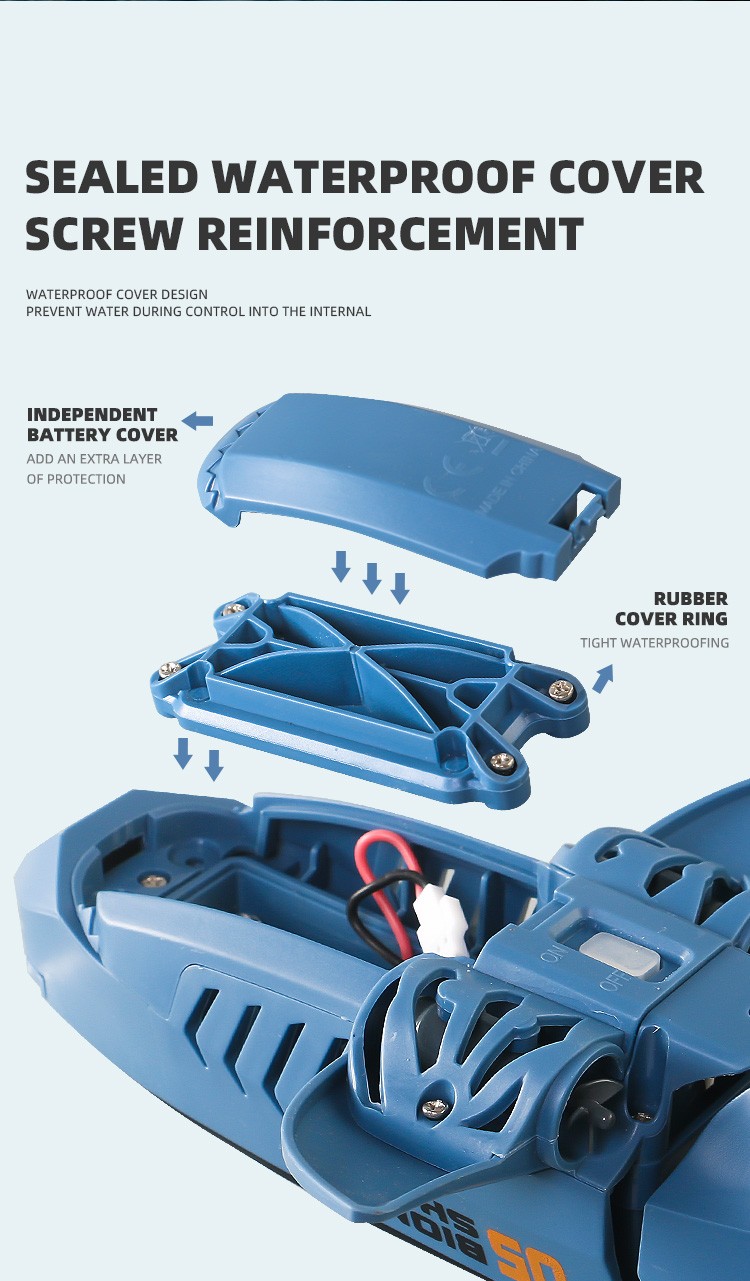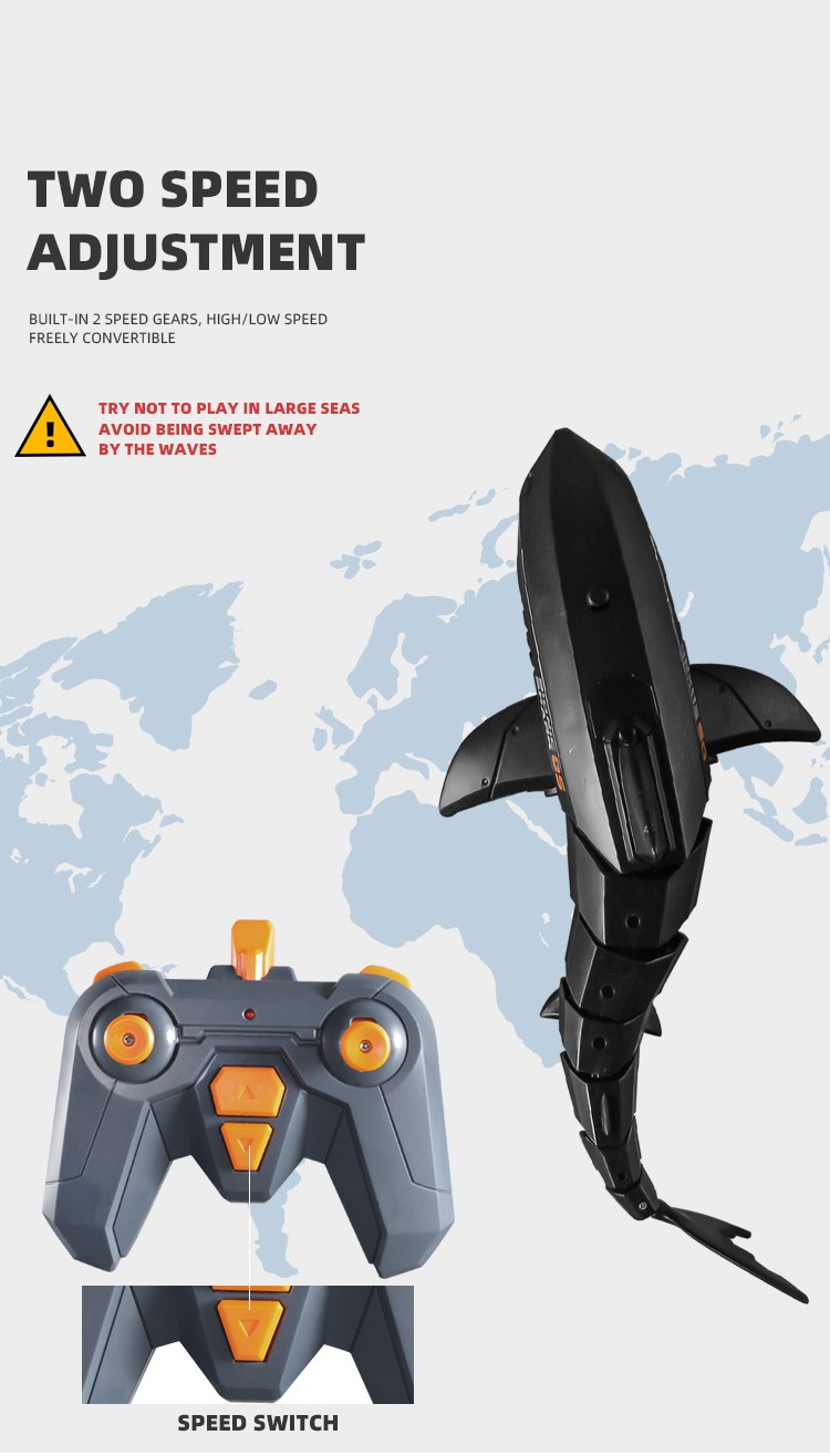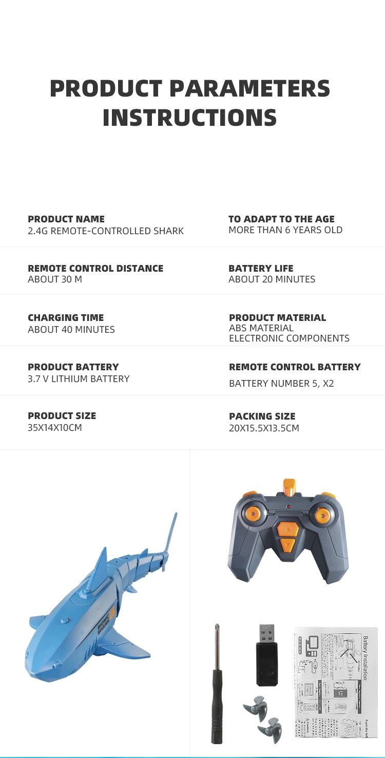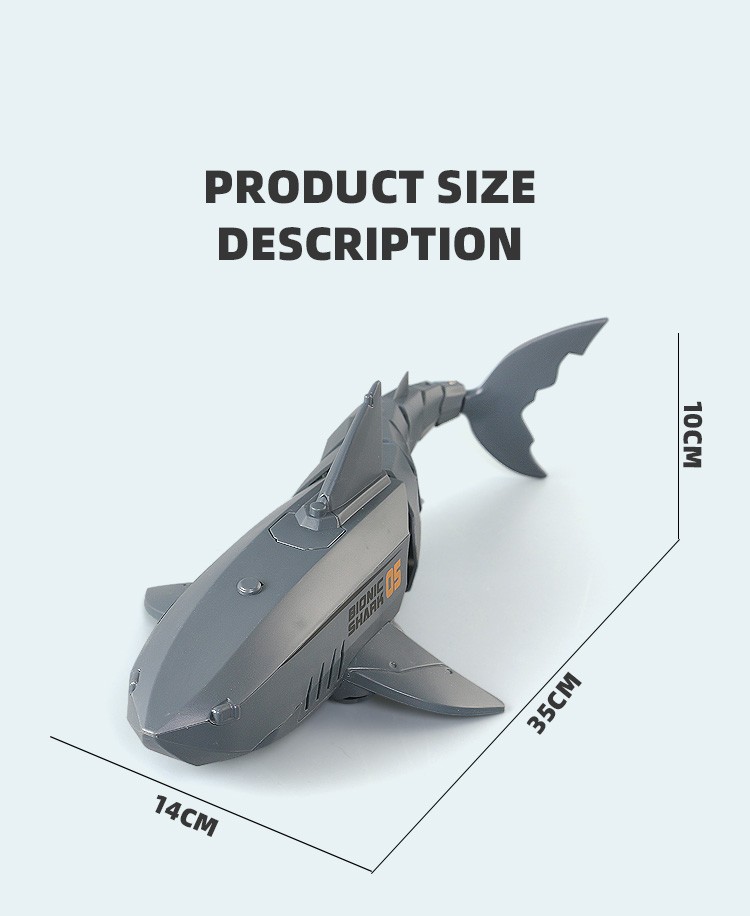 2.4G di telecomando dello squalo funzione principale: in grado di molte persone competere allo stesso tempo (senza interferenze), imitare la azione di nuoto dei pesci. Nuoto in acqua.